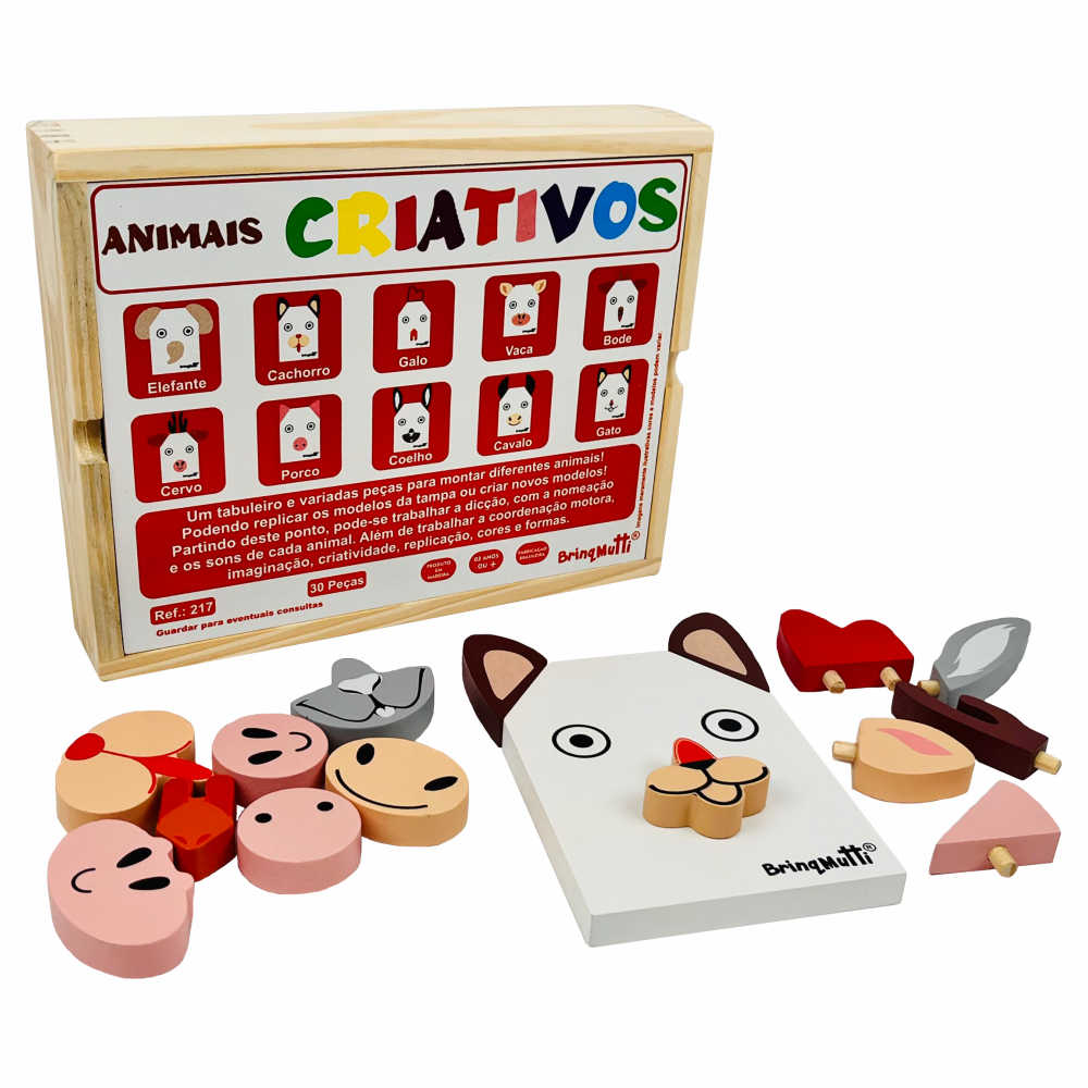 ha só esta caixa! Esta repleta de peças para montar divertidos animais, ou ainda os mais mais inusitados animais que a criança criar, um brinquedo para mergulhar num mundo de desafios cheios de imaginação.