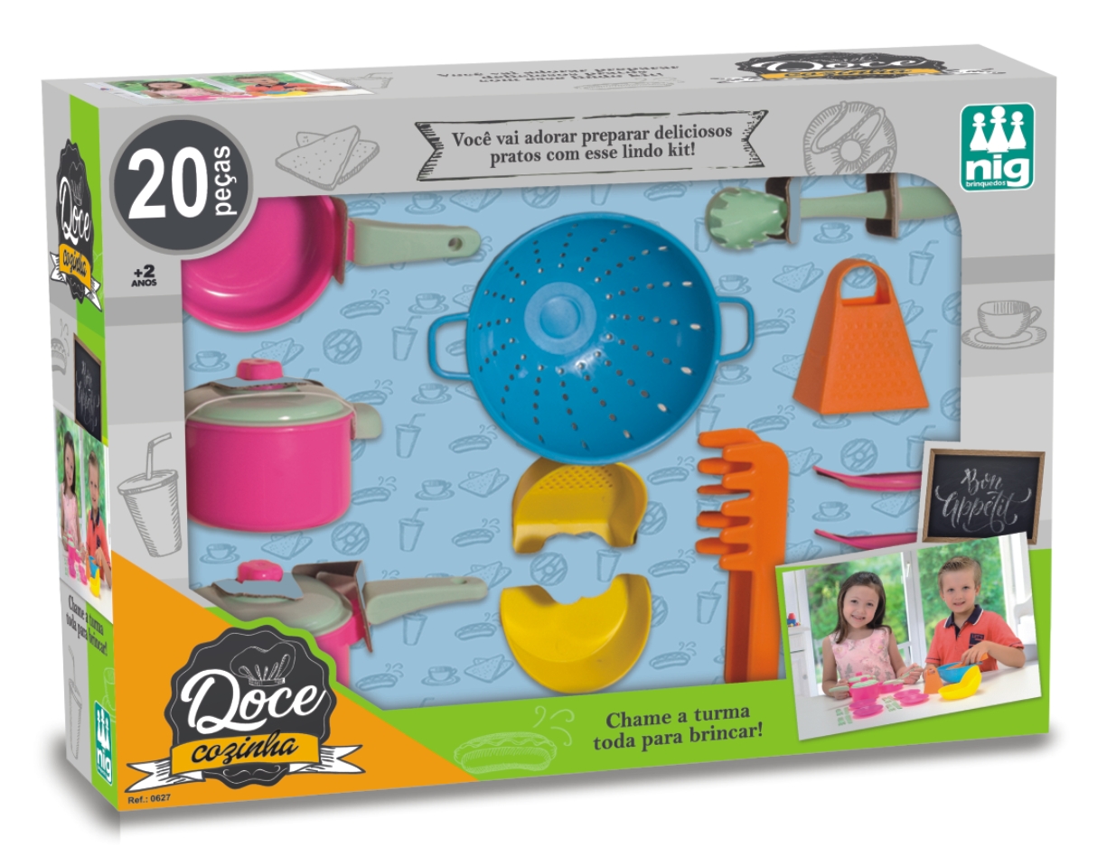 Com o Kit Doce Cozinha da Nig a brincadeira dos pequenos vai ficar ainda mais completa e divertida. Um jogo completo de peças de cozinha que incluí tudo que é necessário para criar as melhores comidinhas.