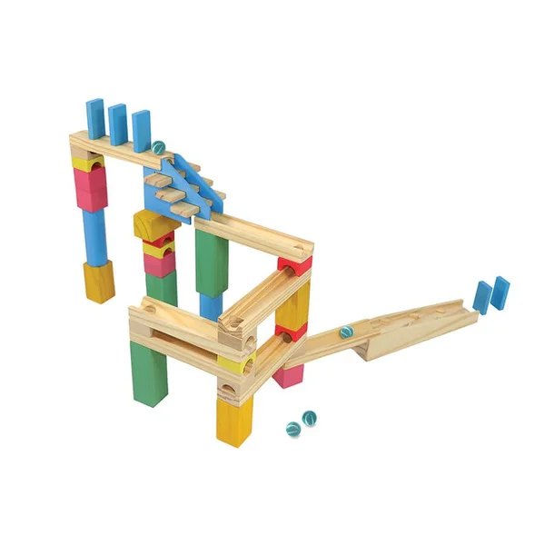Contém: 36 peças de apoio e de passagem, e 4 bolinhas de gude, que possibilitam criar inúmeros circuitos.