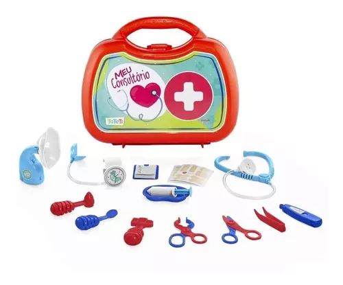 Na brincadeira de faz de conta vale todas as profissões. O Meu Consultório vem com diversos acessórios, idênticos ao que um médico(a) de verdade usa para cuidar do dodói. Tudo fica organizado dentro da prática maleta, que contém vários acessórios para brincar de médico(a), entre eles tem o termômetro, o medidor de pressão, o estetoscópio, o nebulizador e até um mini prontuário.