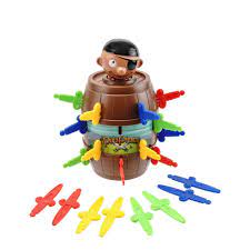 Uma espadinha aqui. Outra ali. E de repente o pirata pula fora do barril. Espete o barril com cuidado, porque ninguém sabe quando ele vai pular. O jogo também possui a funcionalidade de realidade aumentada. Contém na embalagem: 1 pirata, 1 barril, 24 espadinhas.