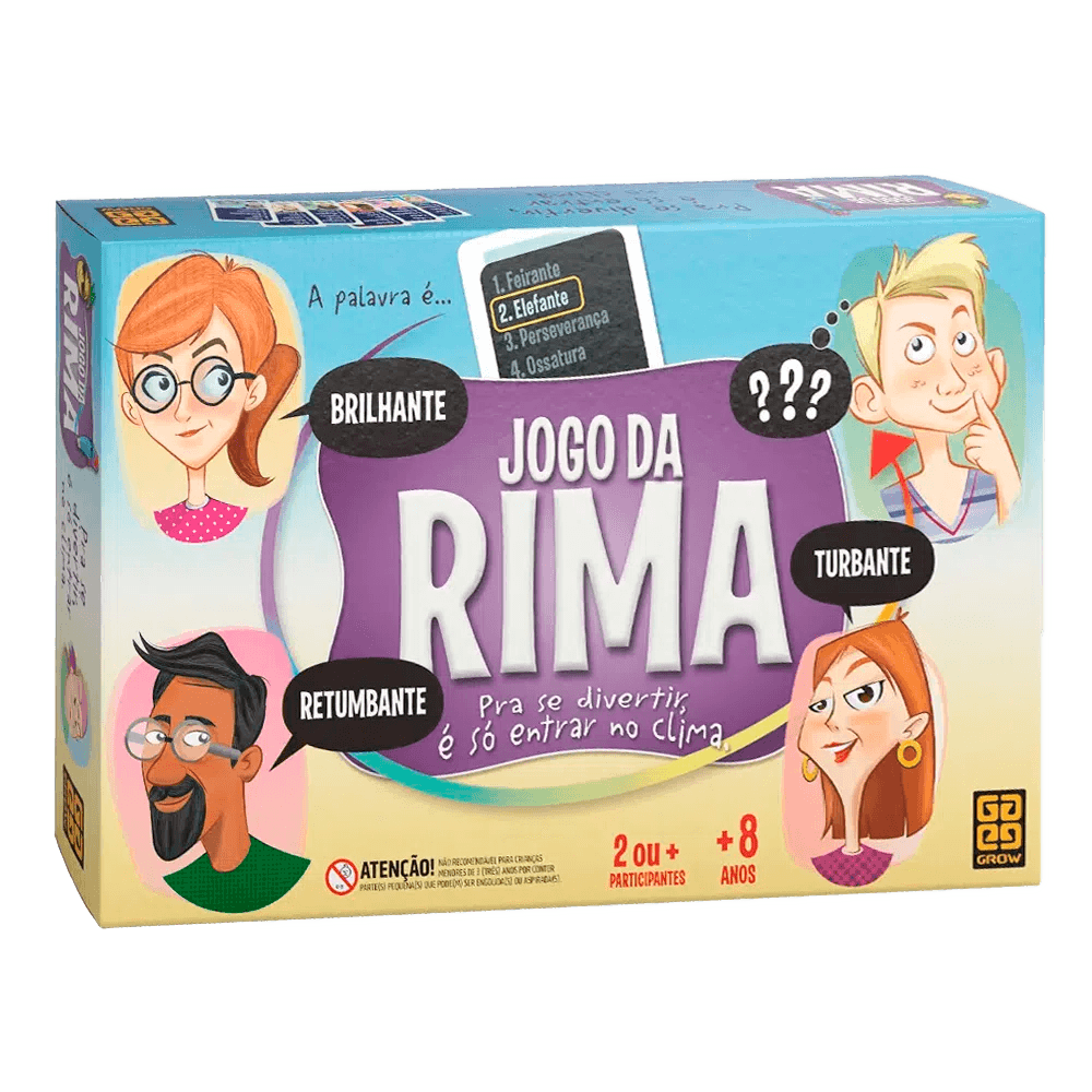 Agora as crianças poderão mostrar todas suas habilidades na arte de rimar! Duas equipes irão se enfrentar neste jogo de rimas. Usando cartas com palavras variadas, as equipes terão o tempo da ampulheta para escreverem o máximo de palavras que rimam com a palavra sorteada, isso no Desafio das Rimas. No Desafio Abacaxi, as equipes vão se alternar dizendo em voz alta uma palavra que rime com a palavra sorteada até que uma equipe não saiba mais rimar! Um jogo super criativo e empolgante! São mais de 550 para muita diversão! A partir de 2 jogadores.