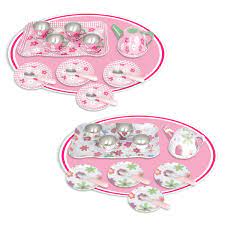 - O conjunto inclui bule, xícaras, pires, pratos, bandeja e quatro colheres