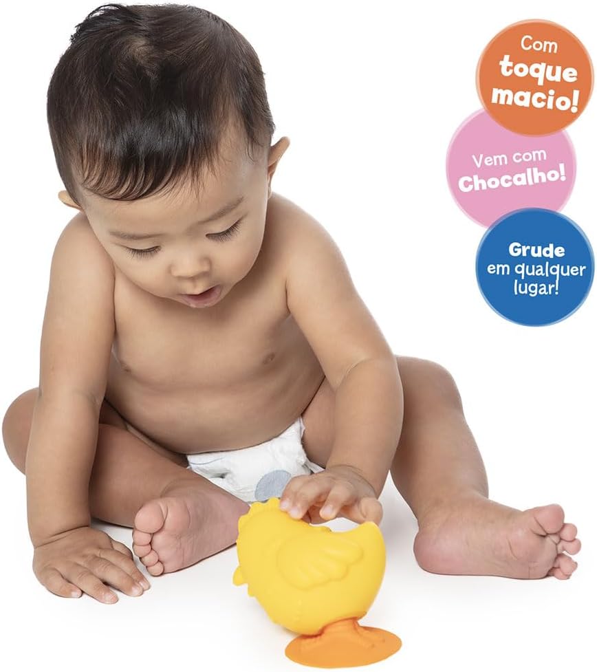 • Grude a galinha numa superfície e divirta-se com o barulhinho e o movimento que ela faz!