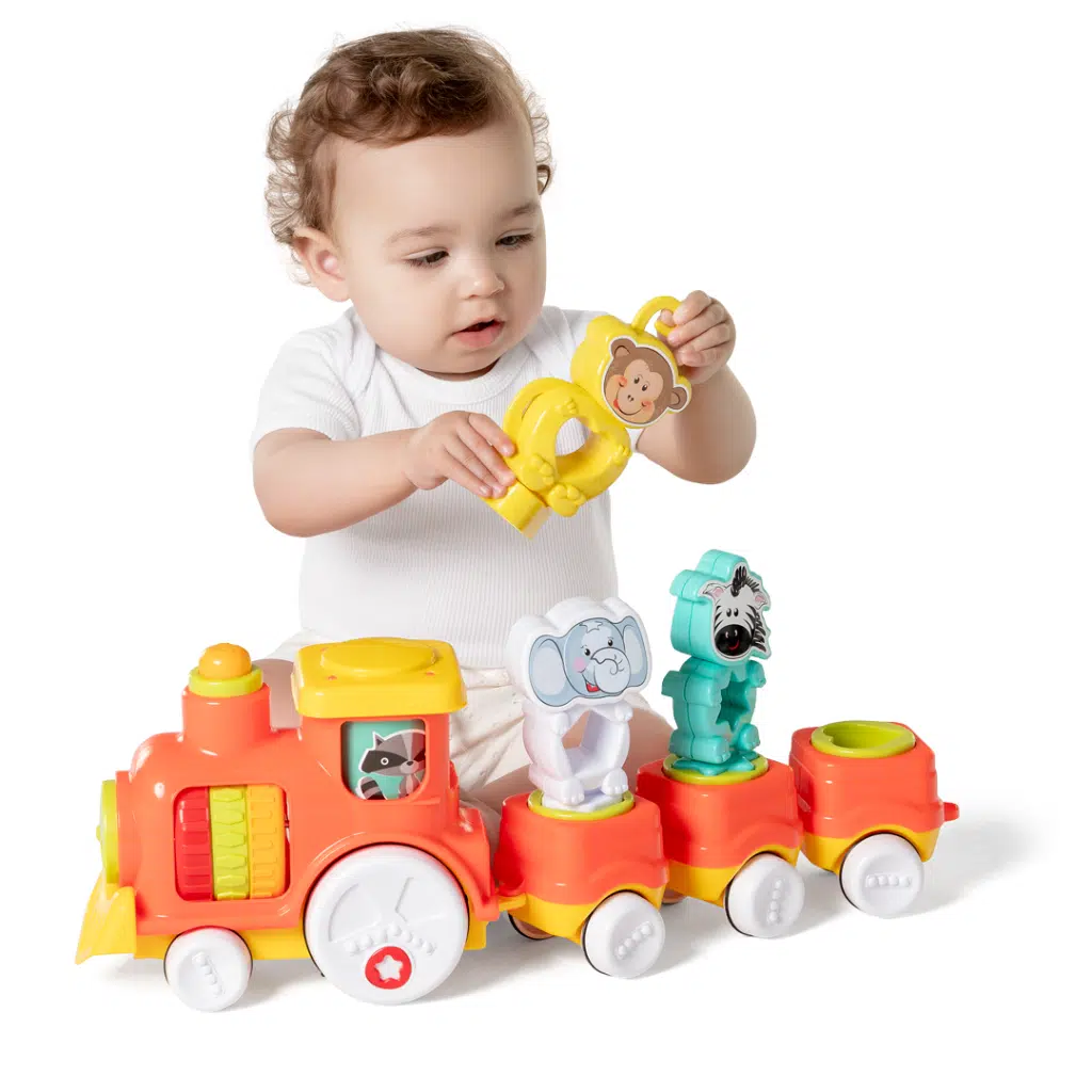 O Zoo trem estimula a coordenação motora e a habilidade de compor objetos.
